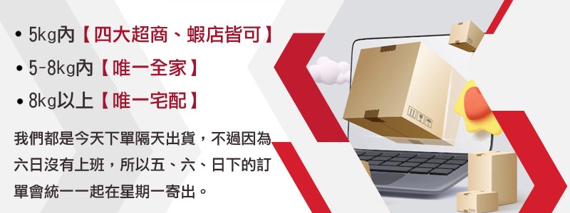 4kg 以下 -> 四大超商、蝦皮店到店皆可